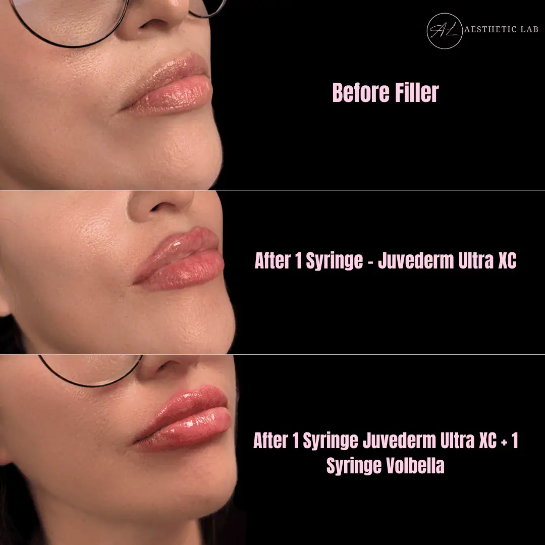 Fillers add volume and shape to the lips, enhancing their fullness and contour for a more balanced appearance.